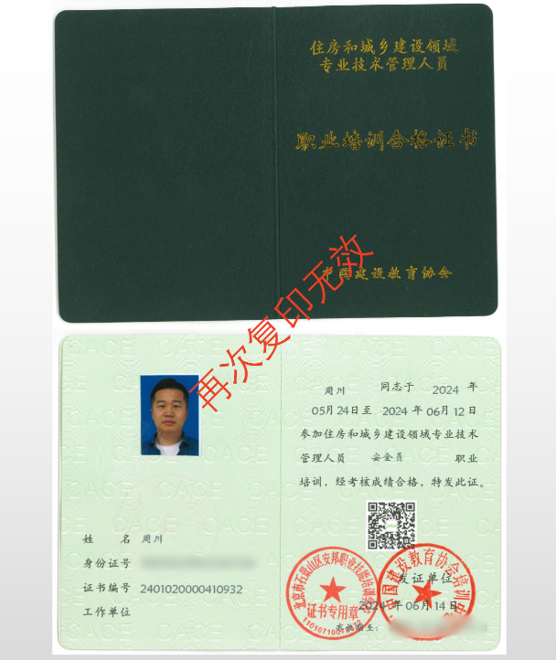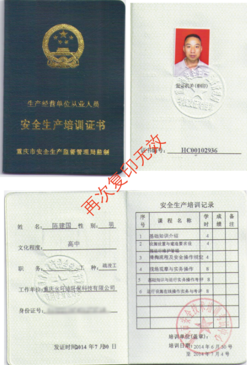 安全生产培训证书