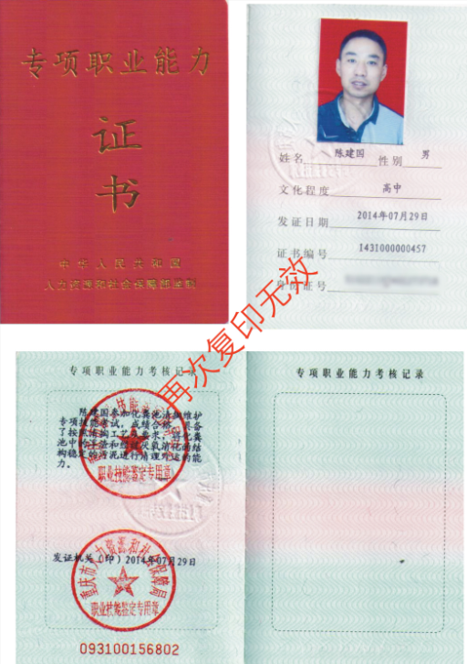 专项职业能力证书